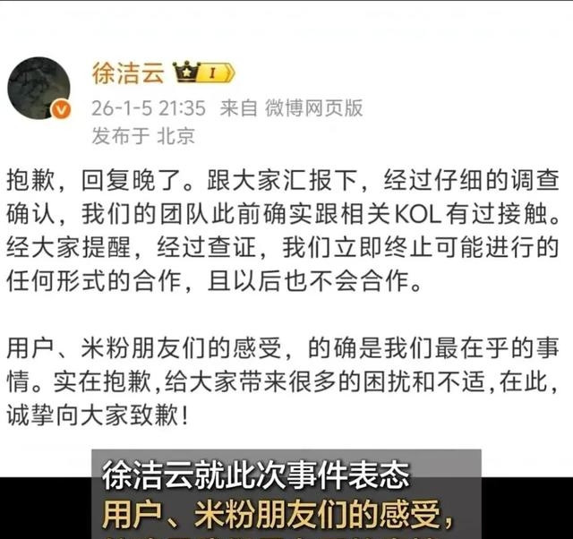 1 月 5 号晚上,新上任一个多月的公关总经理徐洁云站出来道歉,承认确实接触过“大熊”,但说现在已经终止,而且以后也不合作。话说得挺好听,可问题是,大家不信了