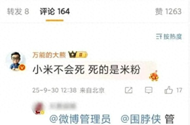 一句“小米不会死,死的是米粉”,直接把米粉骂成工具人。更离谱的是 2024 年还因为造谣联想、煽动华为对立,被法院实打实判赔 16 万,微博还被禁言过一阵。