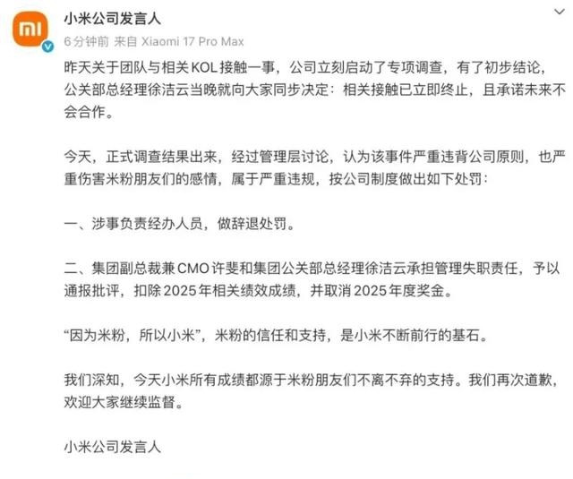 在这种节骨眼上,品牌公关如果还玩草台班子,真会出人命的。从这次看,好在雷军下手挺快,至少把锅明确扣在决策链条上的负责人头上,让米粉看到一点“态度”。