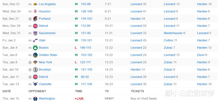 快船过去13场比赛取得11胜2负,小卡的正负值也继续提升到+145还是联盟第一,莱昂纳德的场均得分也提升到场均32.72分也是联盟第一,他的个人能力真的强。