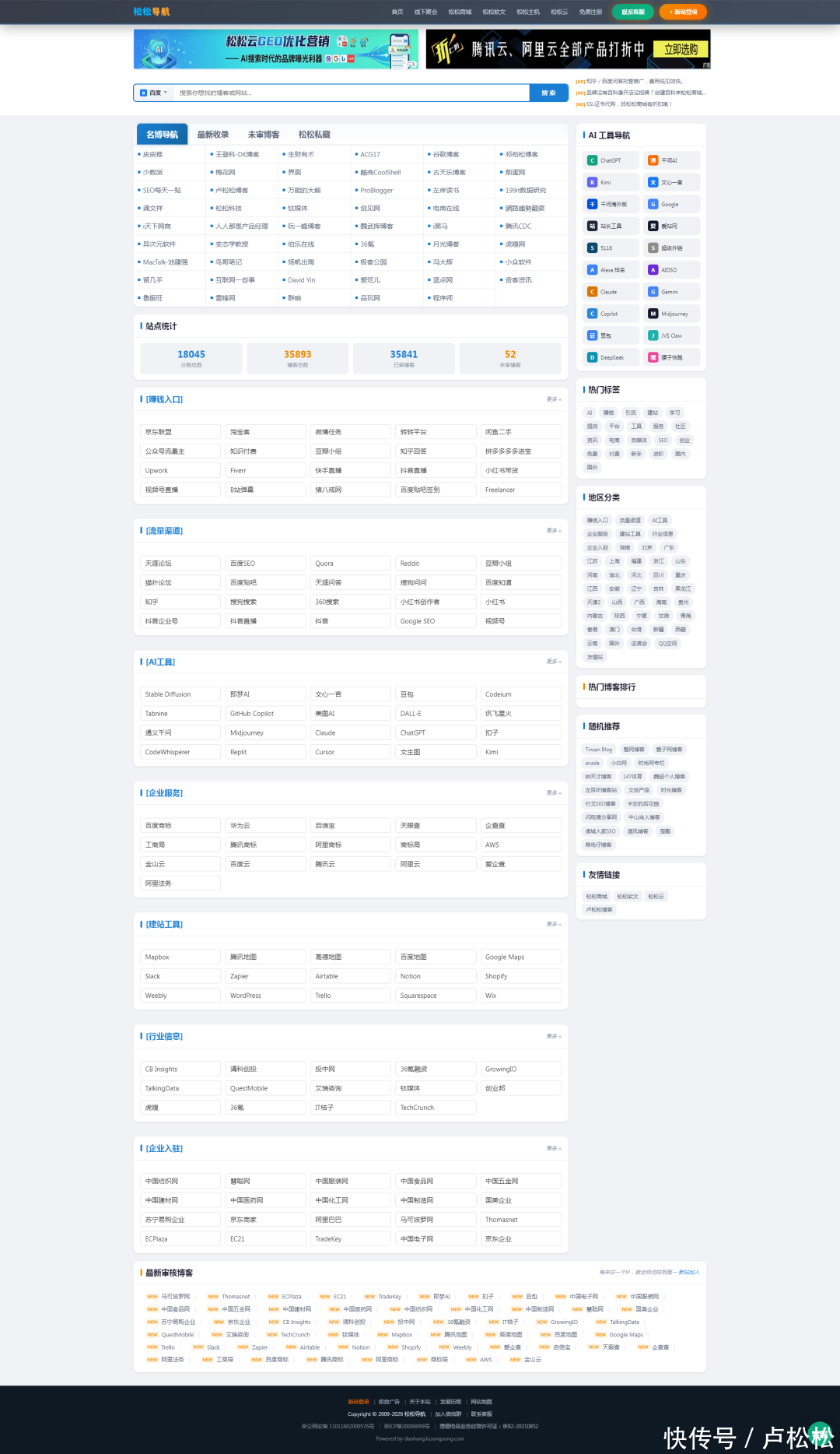 写在最后:除了博客大全改造(改版后叫松松导航),我还顺手改造了松松云官网改版、做了一套GEO查询系统。