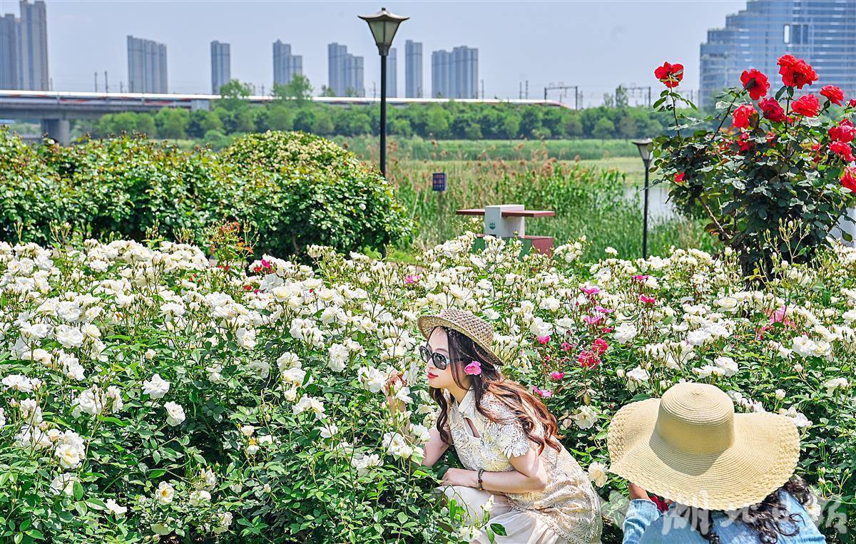 4月25日,武汉市杨春湖湿地公园的月季园迎来盛花期。